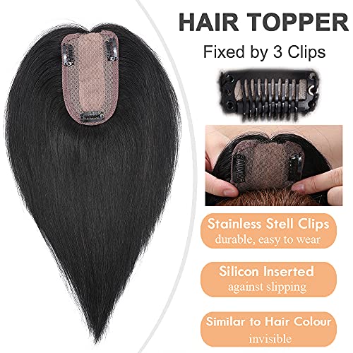 Elailite Hair Topper Donna in Lace Extension Capelli Veri Clip 45cm 53g Protesi Toupee Toupet Silk Base 7cm*13cm 100% Remy Human Hair - 1# Jet Nero