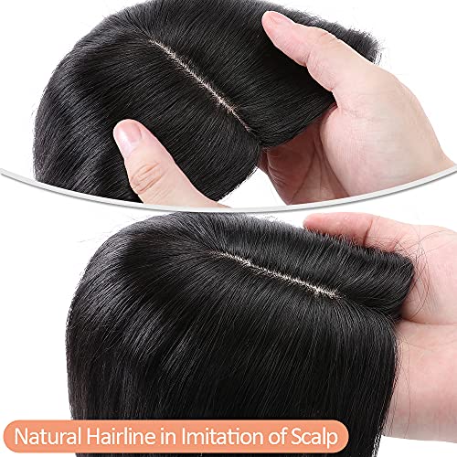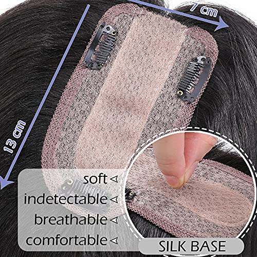 Elailite Hair Topper Donna in Lace Extension Capelli Veri Clip 35cm 44g Protesi Toupee Toupet Silk Base 7cm*13cm 100% Remy Human Hair - 1B# Nero Naturale