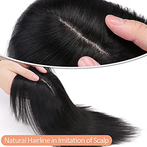 Elailite Lace Hair Topper Donna con Frangia Extension Capelli Veri Clip 15cm 27g Protesi Toupee Toupet Silk Base 7cm*13cm 100% Remy Human Hair 150% Density - 1B# Nero Naturale