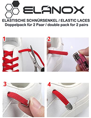 ELANOX Lacci elastici senza legatura, 4 pezzi per 2 paia di scarpe, con eleganti estremità, senza legatura, chiusura rapida, lacci in gomma, per adulti e bambini (verde mela)