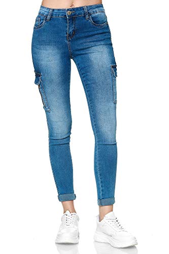 Elara Pantaloni Donna Cargo Jeans Slim Fit Tasche Laterali Chunkyrayan Blu YA477 Blue-42 (XL)