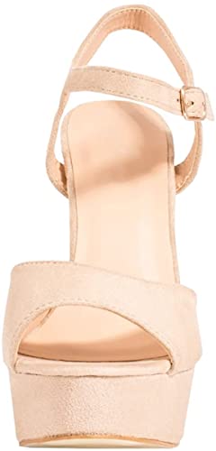 Elara Plateau Pumps Chunkyrayan Scarpe con comodo tacco e plateau, effetto camoscio, Beige (Beige), 37 EU