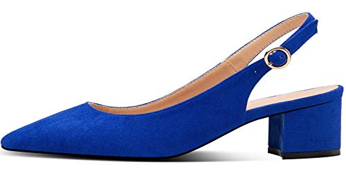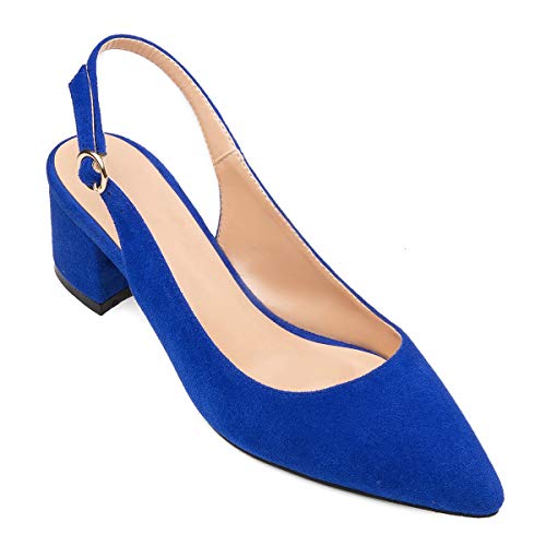 Elashe- Scarpe da Donna - pointed Toe Slingback Sandali - tacco a blocco con Cinturino Caviglia Fibbia Suede-Blu EU45