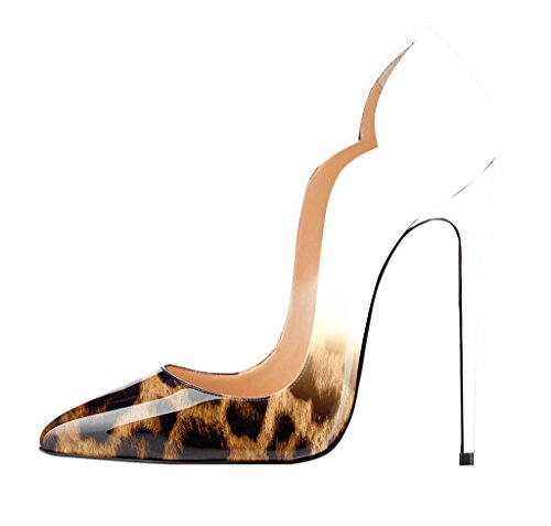 Elashe- Scarpe da Donna - 12CM Ritaglio High Heels - Chiuse Davanti Scarpa- Pattern Animale Scarpe col Tacco Leopardo-Marron EU39