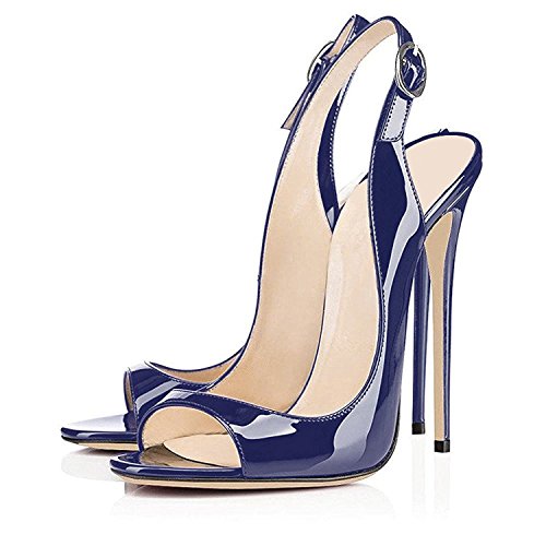 Elashe -Scarpe Peep Toe Donna Slingback Sandali Tacco a Spillo Con Cinturino Caviglia Fibbia Blu EU35