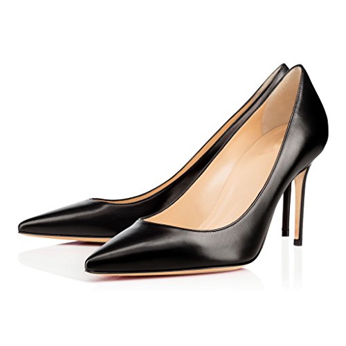 Elashe- Scarpe da Donna - 8CM Scarpe col Tacco Pointy Toe - Classiche Scarpe col Tacco Matte Nero EU45
