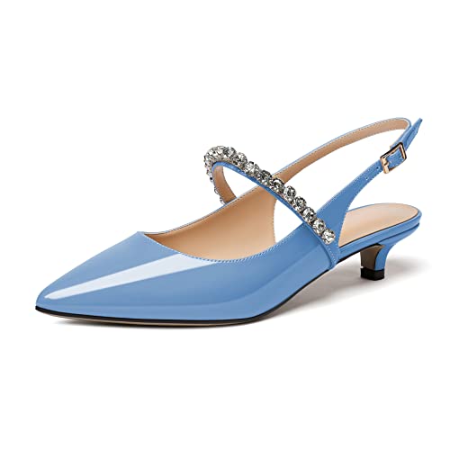 Elashe Slingback Scarpe Mary Jane Sandali Tacco Kitten Azzurro EU35