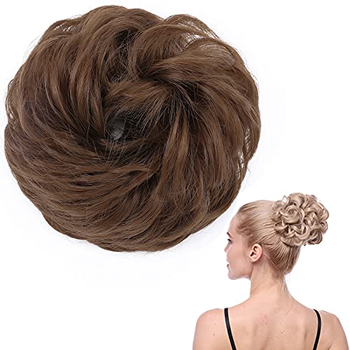 SEGO Elasitco con Capelli Ricci Finti Spettinati Ciambella per Chignon Extension Folto 45g Hair Bun Coda di Cavallo # Castano Chiaro