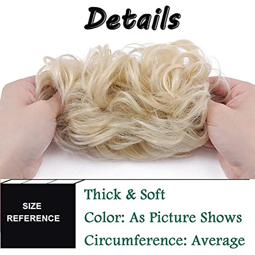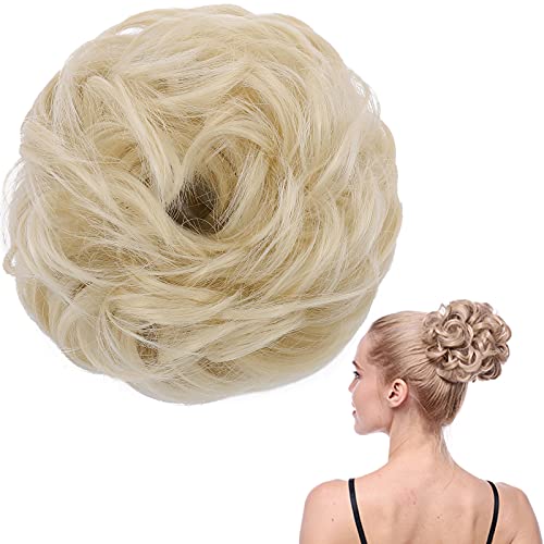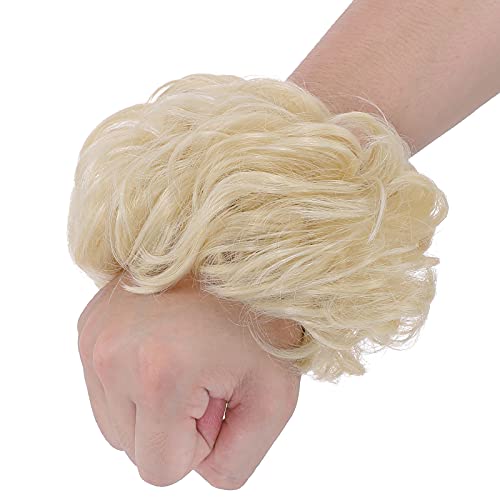 SEGO Elasitco con Capelli Ricci Finti Spettinati Ciambella per Chignon Extension Folto 45g Hair Bun Coda di Cavallo # Biondo Chiarissimo