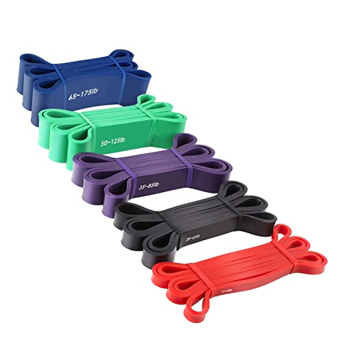 Set di 5 Elastici Fitness, 5 Livelli di Resistenza, 5x208cm Fasce Elastiche Fitness di 100% Lattice Naturale, Bande Elastiche Palestra per Crossfit, Yoga, Pilates a Casa, Borsa Inclusa
