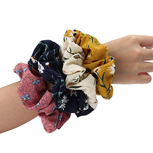 Materiale fiore in chiffon: questi elastici per capelli sono realizzati in tessuto chiffon, stampa floreale di colori misti, buona consistenza, lucido e confortevole, flessibile ed elastico. Ogni fascia per capelli ha una fascia in gomma resistente, che può essere ben riparata. Non danneggia i capelli, è facile ed è morbida da indossare.