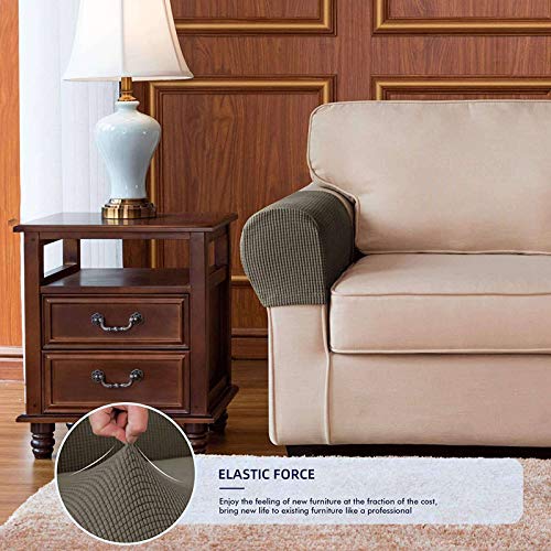 Elastico Copribraccioli per Poltrone per Divano, Elastico Jacquard Spandex Tessuto Copri Braccioli Protezione per Divano, con Twist Pins Antiscivolo Copridivano-taupe-2-Pezzi