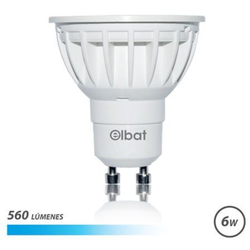 Elbat Lampadina LED GU10 6W 560lm 6500K Luce fredda Specifiche: -Potenza: 6W -Lumen: 560 -Tipo di luce: 6500K Luce fredda -Attacco: GU10 -Angolo: 110° -Dimensioni: 49,5x56 mm -30.000 ore di vita. -15.000 accensioni.