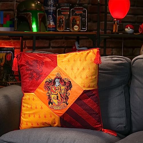 Elbenwald cuscino Harry Potter rosso con nappe nella progettazione di Grifondoro con toppa stemma ricamato nei colori casa gialla 48 x 48 cm