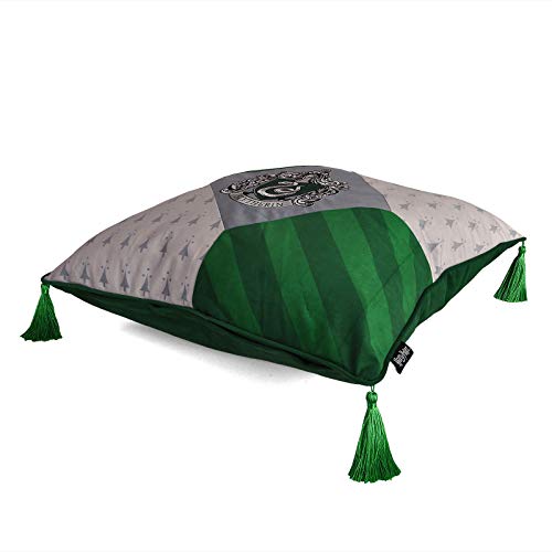 Licenza ufficiale cuscino mondo magico nel design Serpeverde con i colori delle case originali e patch di stemma con scritte e serpente. Amorevolmente progettato cuscini con nappe per un look magico per la vostra camera. Ideale come decorazione o per coccole sul divano
