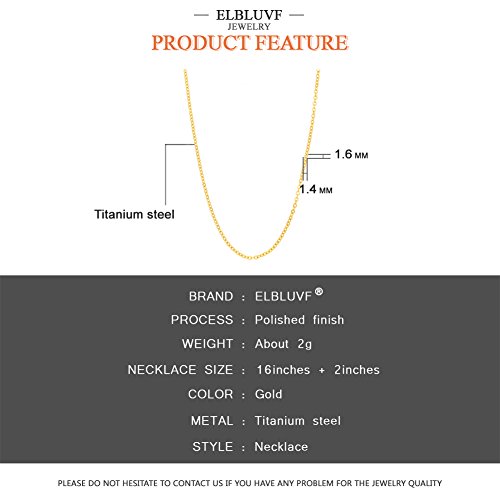 ELBLUVF Placcato in Oro 18 K Collana a Catena in Acciaio Inox Semplice Collegamento per Donne 43,2 cm