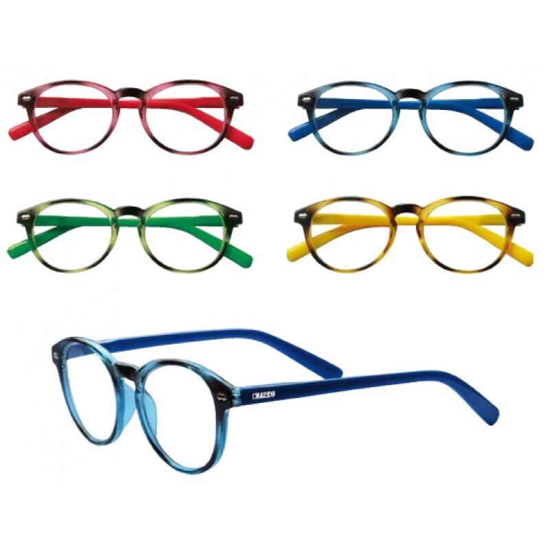 Kit da 24 occhiali composto da 1 modello in 4 colori, con assortimento ottimale delle diottrie, dalla +1,00 alla +3,50 - Aste flessibili, cerniera con meccanismo a molla per una migliore adattabilità degli occhiali al viso