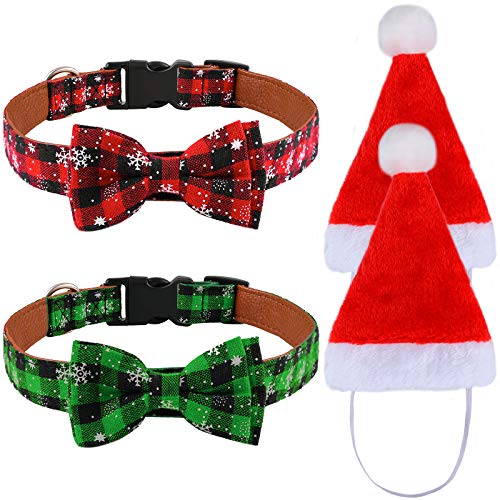 Elcoho - Confezione da 2 collari per cani con fiocco di neve, con fiocco di neve, con colletto classico a quadri e 2 pezzi per animali domestici, decorazione per gatti, cani e animali domestici