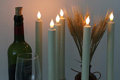 Eldnacele, set di 6 candele coniche in cera, senza fiamma, con luci LED, telecomando e timer per 4/8 ore, ideali per decorazione di casa e matrimoni Candela bianca con supporto in argento.