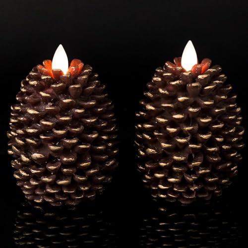 Eldnacele Candele a cono di pino a LED funzionamento a batteria, senza fiamma con timer e cera non profumata, confezione da 2 pezzi per decorazioni natalizie per la casa e la festa