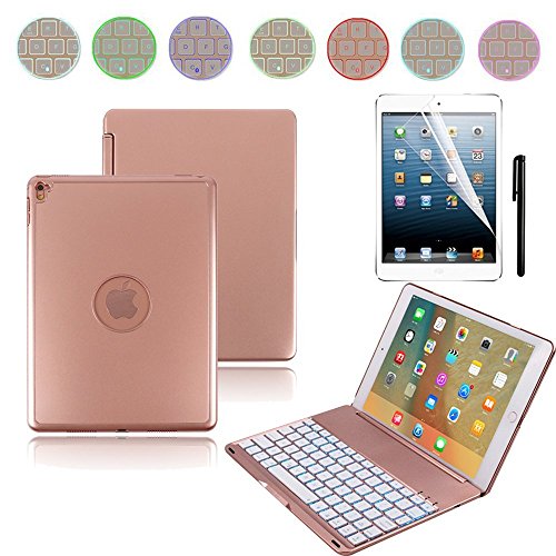 Elecguru, custodia per tastiera iPad Pro 9.7, sottile, in alluminio, tastiera Bluetooth, custodia, cover, con 7 colori LED, retroilluminazione, per iPad Pro 9,7” Rose Gold