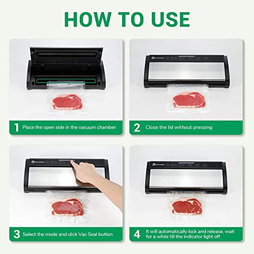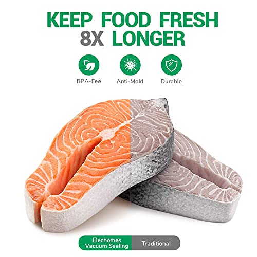 【Potente sistema automatico di aspirazione】Macchina sottovuoto automatica Elechomes con un' aspirazione potente di 85kpa, che rimuove quasi tutta l'aria per mantenere gli alimenti freschi 8 volte più a lungo rispetto alla conservazione classica e proteggere le sostanze nutritive negli alimenti.