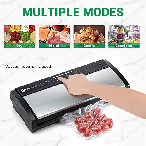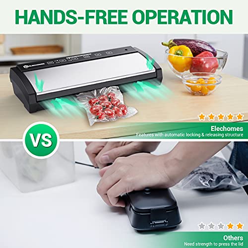 Elechomes Macchina Sottovuoto per Alimenti, Sigillatrice Sottovuoto Secchi e Umidi Automatico Vacuum Sealer, con 5 Sacchetti per Sigillare e 1 Rotolo di Sacchetti senza BPA