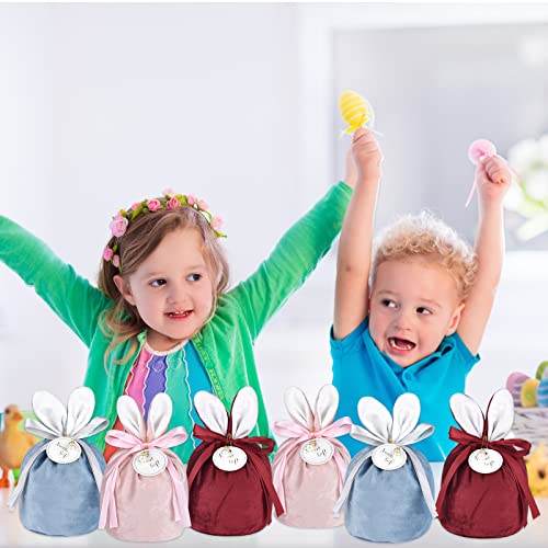 ELECLAND 6 Pezzi Sacchetti di Regali di Pasqua Sacchetti di Caramelle con Coulisse Orecchio di Coniglietto di Pasqua Sacchetti di Dolcetti di Pasqua Sacchetti di Velluto per Bomboniere di Pasqua