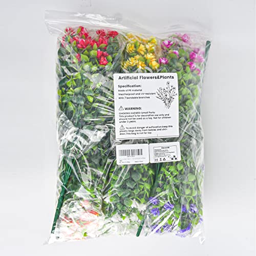 ✨ 12 mazzi di fiori finti da esterno sono ben fatti e offrono 6 bellissimi colori vivaci come viola, bianco, giallo, rosso, arancione ecc., Con i rami verdi ti danno un tocco di primavera. Bella decorazione per qualsiasi luogo.