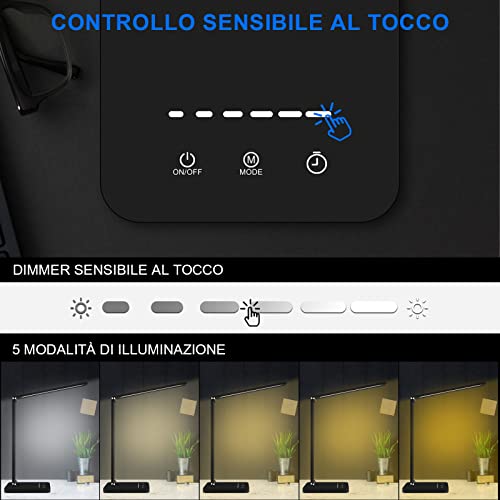 Electight Lampada da Tavolo LED Pieghevole Protezione Degli Occhi, Touch Control, 5 Livelli di Luminosità & Dimmerabile, Interfaccia USB, Funzione Timer, per Lavorare, Leggere, Studio