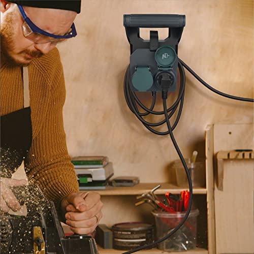 Prolunga con doppia presa Schuko tedesca IP44 con tappi a chiusura automatica. Maniglia ergonomica avvolgi prolunga
