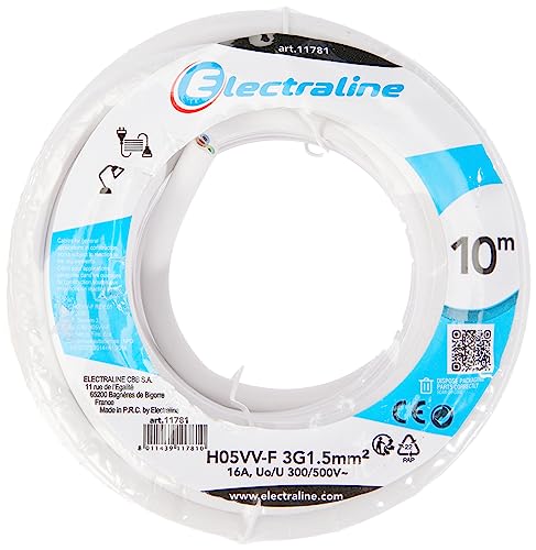 Electraline 11781 Cavo per Prolunghe H05VV-F, Sezione 3G1.5 mm, 10 mt, Bianco