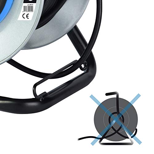 Avvolgicavo professionale in metallo senza cavo 4 prese IP44 - con passacavo e maniglia ergonomica e pratica per guanti da lavoro