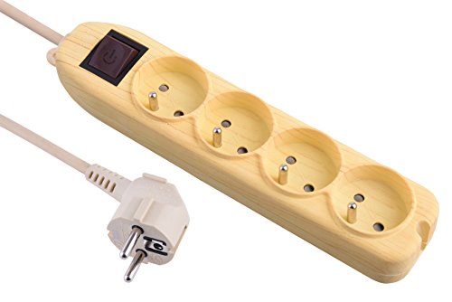 Electraline 33222 - Ciabatta multipresa a 4 prese + interruttore, 1,5 m, legno chiaro