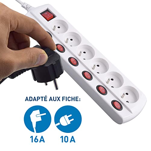 Electraline 35434 - Ciabatta multipresa a 6 prese + interruttori, lunghezza 1,5 m, sezione 3G 1,5 mm2, bianco, 35433