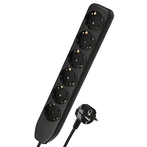 Electraline 51612 Ciabatta con 6 prese, con cavo 3G1 da 1,5 m, colore: nero