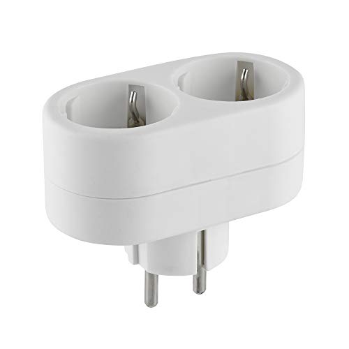 Electraline 55072 Adattatore 2 Prese Frontali, Spina Tedesca, Multipresa 2 Posti Schuko, Bianco