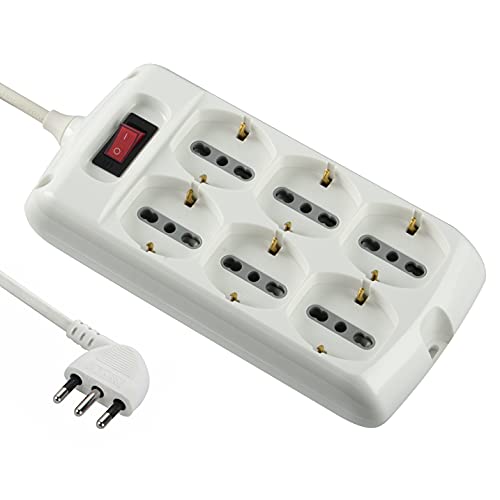 Electraline 62060 Multipresa 6 Posti Polivalenti Schuko + 10/16A con Interruttore e Cavo, Bianco, 1.5 m