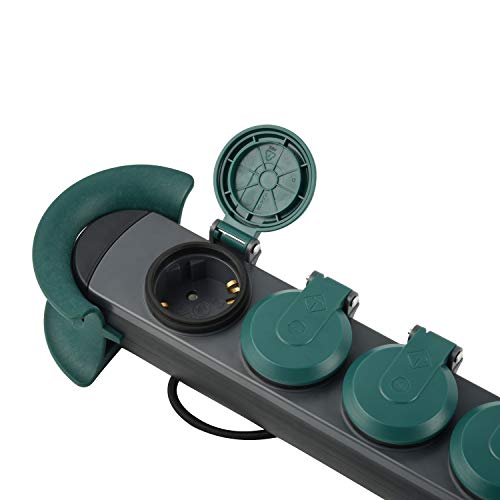 Electraline 62085 Multipresa Professionale da Lavoro per Outdoor, 4 prese Schuko con tappo IP44, appendibile con 2 ganci, Cavo in gomma 4 m H07RN-F 3G1,5, Nero/Verde