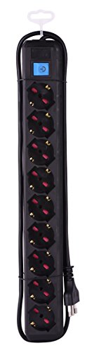 Electraline 62089 Multipresa 9 Posti Polivalenti (Schuko + 10/16A) con Interruttore, Nero