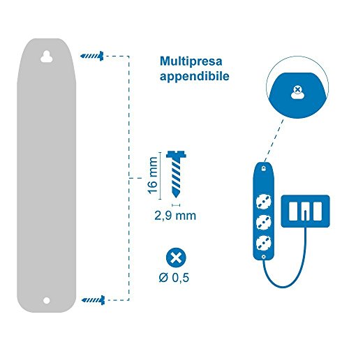 Product 1: Multipresa con 2 prese polivalenti (shuko + 16A +10A), 4 prese bivalenti (10A + 16A), 2 prese USB MAX. 2.1A
