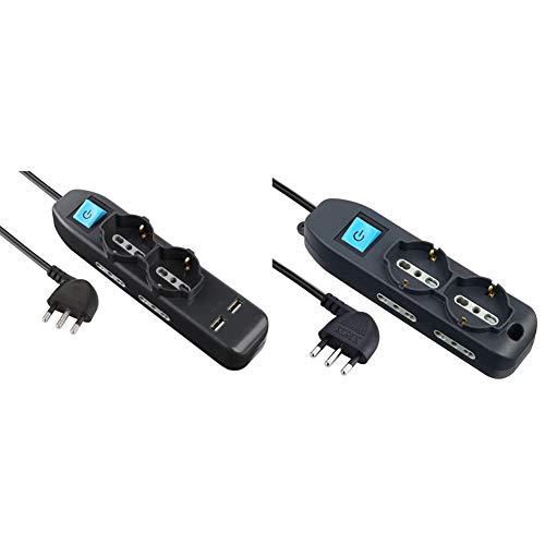 Electraline 62095 Multipresa 6 Posti 2 Polivalenti Schuko 4 Bivalenti 10/16A 2 Prese Usb 2.1A -Cavo 1,5 M, Nero & 62000 Multipresa 6 Posti 2 Schuko E 4 Bivalenti 10/16A, Cavo Ho5 Vv-F, Spina 16A