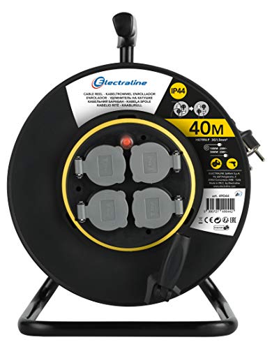 Electraline PRO-Line 49044 Prolunga per Cavi con Avvolgicavo Professional 40 MT con 4 Prese Schuko IP44, Piastra Fissa, Cavo in Gomma H07 RN-F Sezione 3G1.5 mm², Nero
