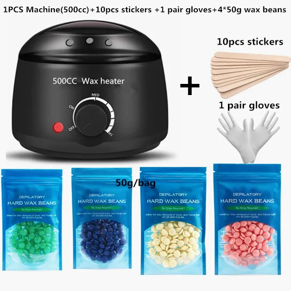 Electric 500cc w ax warmer Hair Removal Wax- Heater Wax Beans 10pcs Wood Stickers Sets Waxing Kit cera depilator