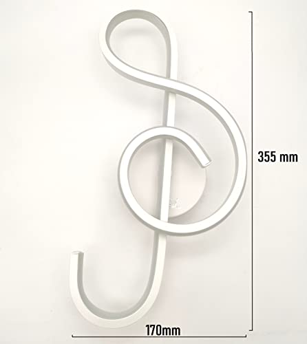 TOT ELECTRIC Applique led 14w chiave di violino lampada da parete nota musicale bianco stile moderno luce fredda naturale calda (Luce Naturale)