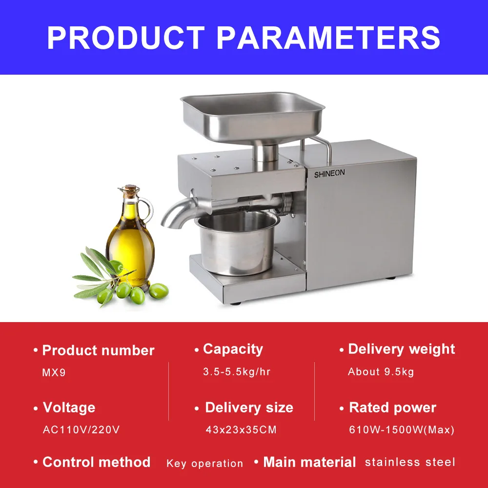 High Electric Home Automatic Oil Press Machine Olive Oil Extractor Organic Olive Expeller Cold /Hot Press Stainless Steel
