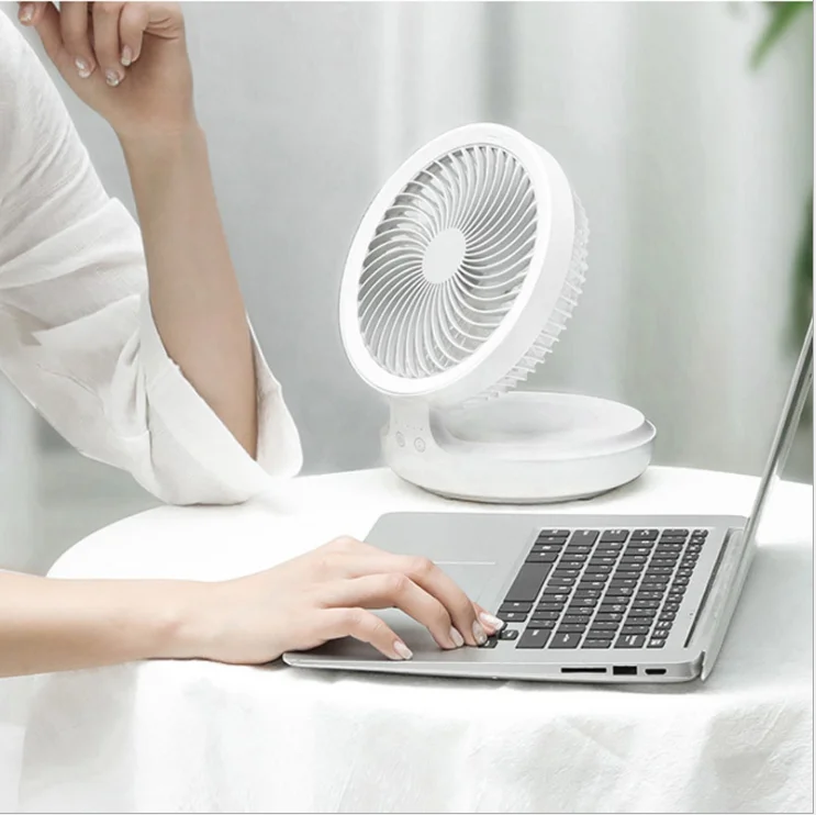 Edon E808 Electric Fan Battery Drive 120 Degree Adjustable Portable USB Desktop Mini Fan 4 Speeds Night Light for Home Office