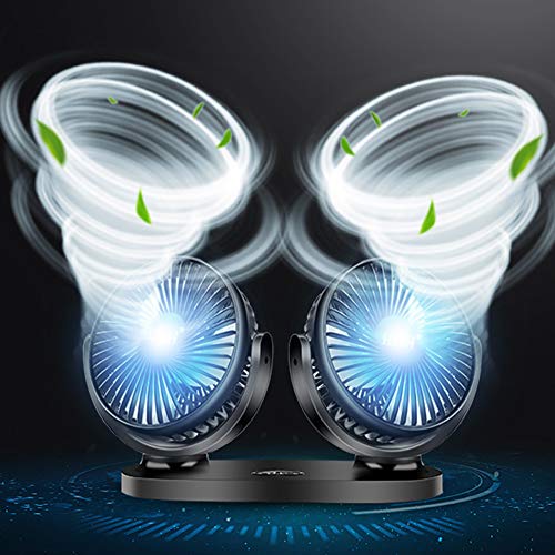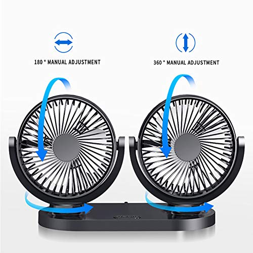 Car Fans, USB Electric Cooling Fan, Air Cooling Usb 12V/24V Cooler, 360 Degree Rotatable Dual Head 3 Speed Air Fan. for SUV RV Boat Truck Fan Home Office. (Nero)