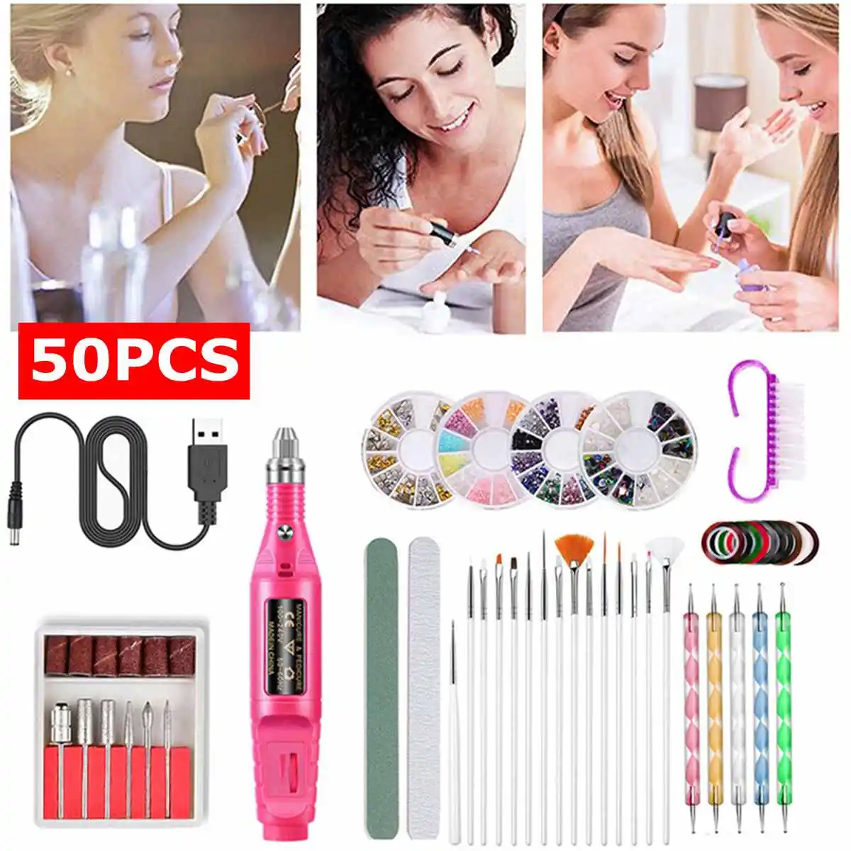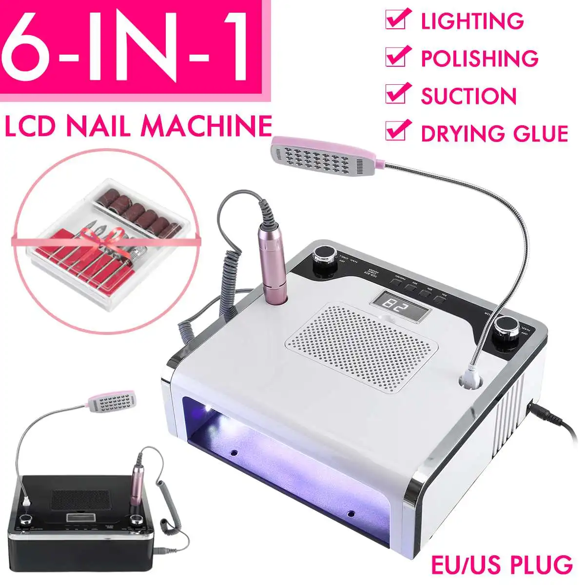 108W Electric Nail Drill Machine 30000 RPM Nail Dust Vacuum Cleaner LED Lighting 54 LED UV Lamp 6 in 1 Electric Nail File