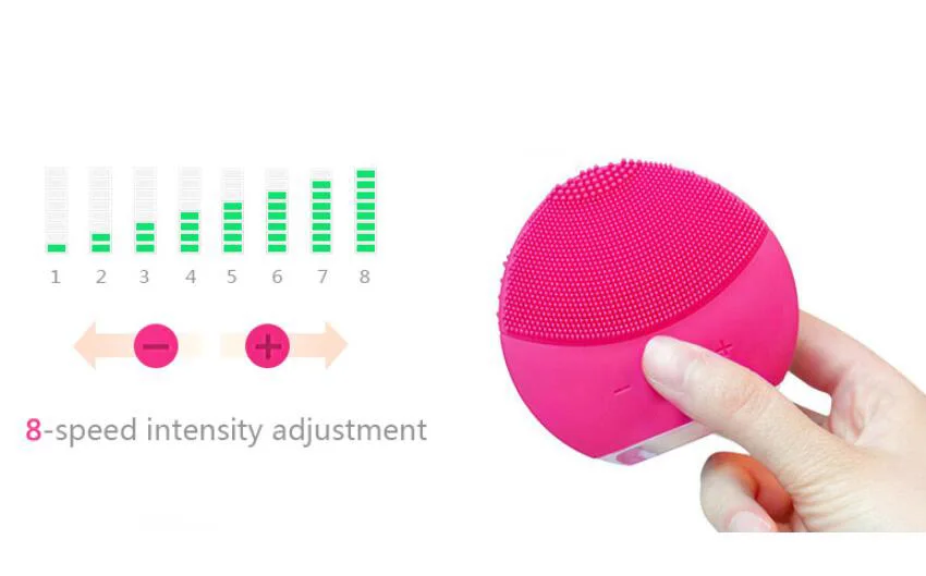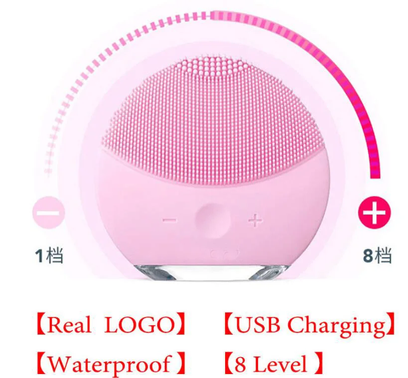 Electric Facial Massage Mini Face Cleansing Brush USB Charging,Waterproof 8 Level T-Sonic Facial Cleansing Device Fuchsia Pearl